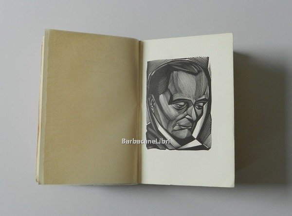 Stato di conservazione: MOLTO BUONO, privo di sovraccoperta, piccole imperfezioni ai margini della copertina (margine basso con minuscoli strappetti, segno di piegatura ad un angolo), due segnetti a penna al dorso, firma di appartenenza sulla seconda carta bianca, per il resto in ordine. Con xilografie di Tranquillo Marangoni (un ritratto e titoletti dei capitoli). Tiratura di 100 esemplari.