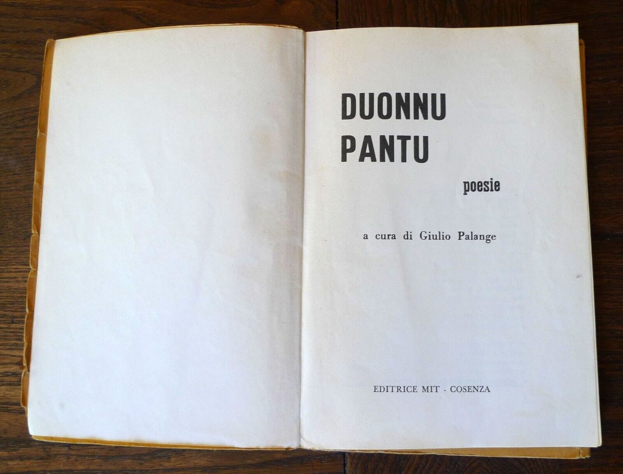 DUONNU PANTU.POESIE.A cura di Giulio Palange.Editrice MIT, Cosenza 1979,brossura, 21,5x14,5 cm., pp.112,COLLANA DI POESIE.I MAGGIORI POETI DIALETTALI DI CALABRIA,testo in italiano e dialetto calabrese,peso: g.250