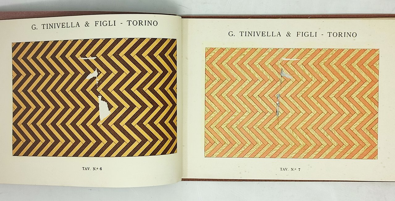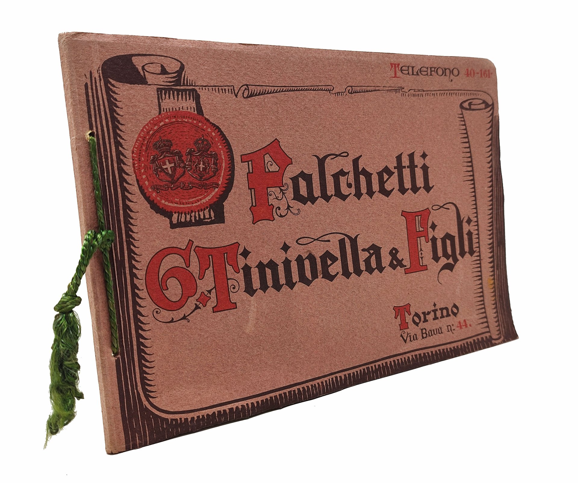 Il catalogo è formato da 62 tavole riproducenti, a colori, i vari tipi di palchetti realizzati dalla ditta piemontese 'G. Tinivella & Figli' (di Torino). Non è presente un'indicazione di data ma, presumibilmente, risalente ai primi decenni del '900. Stampato a Genova dalla Barabino & Graeve. Formato: 25 x 17,5 cm circa. Stato di conservazione: una leggera ammaccatura del margine inferiore (lato destro) della copertina anteriore e dei primi 5 fogli, si segnala una superficiale (e contenuta) abrasione che riguarda la parte centrale delle due tavole frontali 6 e 7 (che, probabilmente, in passato, si erano attaccate tra loro e, nel cercare maldestramente di separarle, è stato creato questo difetto). C'è stata un po' di confusione nel rilegare le tavole che non sempre risultano essere proposte in maniera consecutiva. Non è presente la tavola n. 13 ma credo che non sia una mancanza di questo esemplare ma, piuttosto, un errore di natura editoriale in quanto se mancasse un foglio dovrebbero mancare due tavole (le due facce dello stesso foglio) ma così non è. Nel complesso, comunque, un buon esemplare.