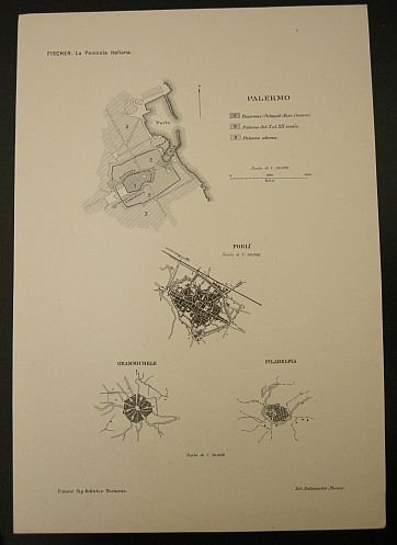 Palermo - Forl? - Grammichele - Filadelfia. Tratto da " La penisola italiana : saggio di corografia scientifica" di Teobaldo Fischer.