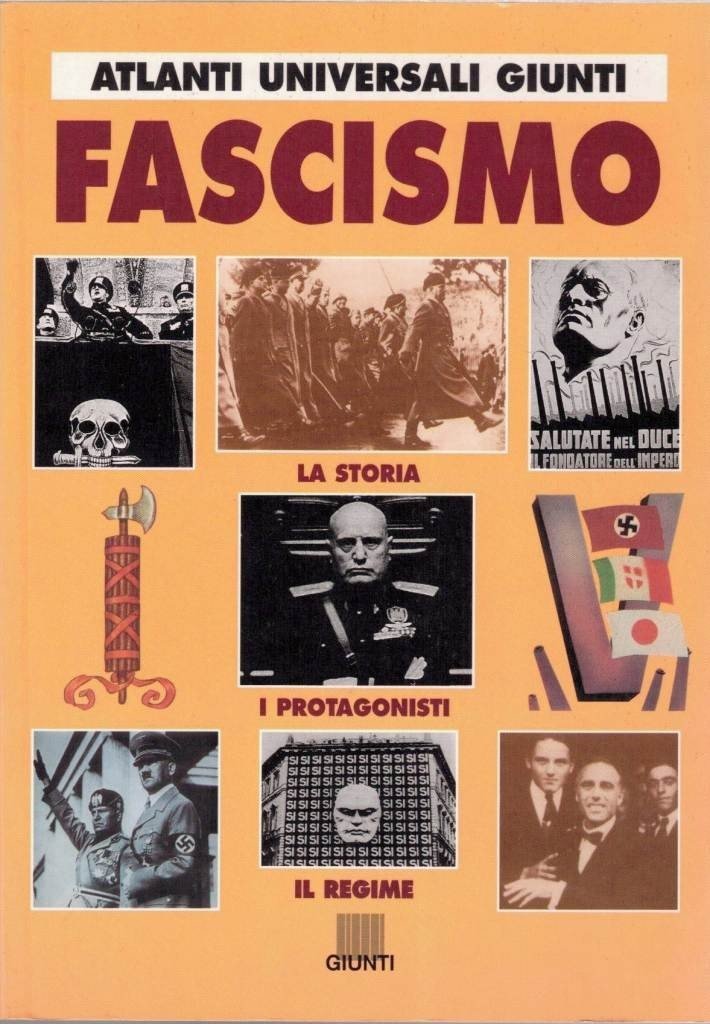 Fascismo, testi di Marco Palla, Giunti, Firenze 1997, pp. 96, ill. b.n. e col., cm 21, br. ed. Collana Atlanti Universali Giunti. Indice: La storia (L’Europa dopo la prima guerra mondiale – La parola – 1919-1920 – 1921-1922 – La marcia su Roma – Governo Mussolini, elezioni, delitto Matteotti – Leggi fascistissime: 1925-1926 – Lo stato fascista: 1927-1928 – I Patti lateranensi del 1929 – Il regime di massa: 1929-1934 – Il corporativismo: 1930-1934 – La guerra d’Etiopia: 1935-1936 – Le colonie italiane – La guerra di Spagna: 1936-1939 – L’alleanza con la Germania e le leggi razziali – La geurra: 1940-1943 – Il neofascismo collaborazionista: 1943-1945) – I protagonisti (Benito Mussolini – I quadrumviri: Bianchi, De Bono, De Vecchi – Italo Balbo – Roberto Farinacci – Dino Grandi – Giuseppe Bottai – Achille Starace – Galeazzo Ciano – I nazionalisti: Federzoni, Rocco, Volpi – I ras – Gli intellettuali: Gentile, Volpe, Pirandello – I collaborazionisti della Rsi) – Il regime (nazionalismo – Imperialismo – Il culto della guerra – Negazione e violenza – Ruralismo e politica demografica – Il totalitarismo imperfetto – La posizione della Chiesa – Gli oppositori del regime – La propaganda: stampa, radio e cinema – Coreografia e scenari – L’immaginario collettivo – Italia virtuale e Italia reale – Eredità e lasciti del regime) – Cronologia – Indice analitico. Minima ingiallitura della carta, per il resto perfetto.