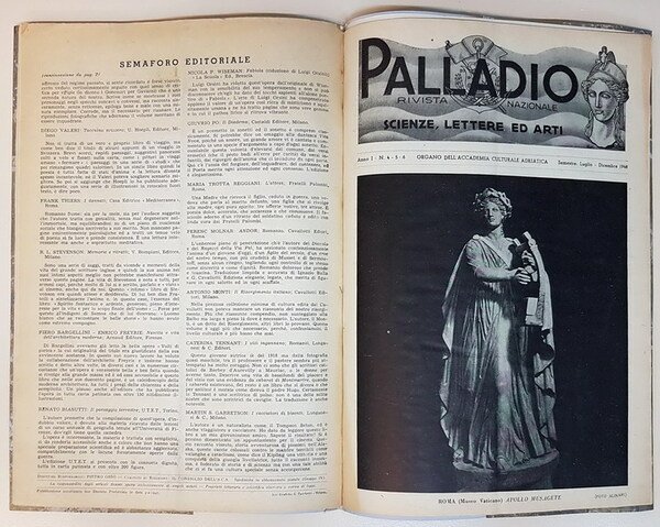 Edizione: annata 1948 completa della rivista bimestrale palladio (organo dell'accademia culturale adriatica, ente a carattere nazionale) - anno 1 dal n. 1 (gennaio-febbraio 1948) al n. 4-5-6 (luglio-dicembre 1948).