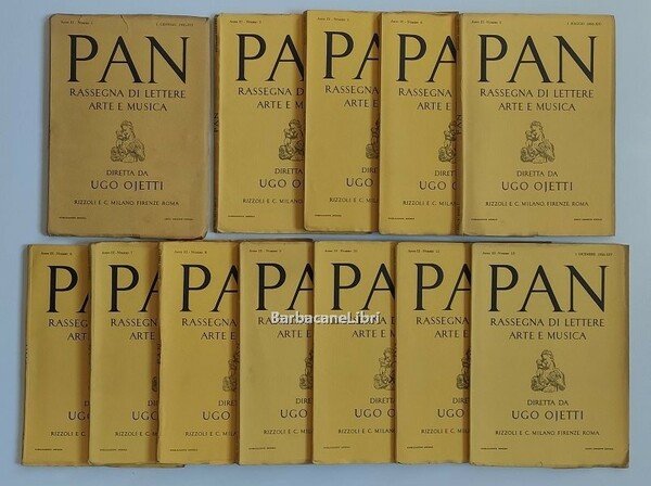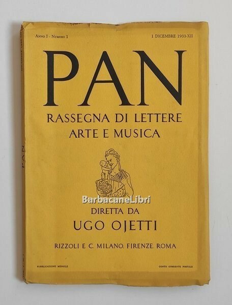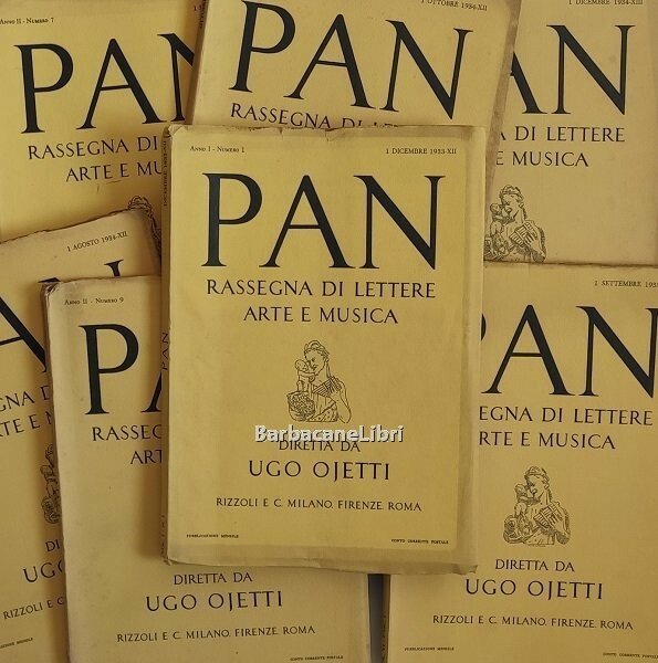 La rivista Pan - Rassegna di lettere, arte e musica è stata fondata da Ugo Ojetti nel 1933. Redattori Giuseppe De Robertis e Guido Piovene.