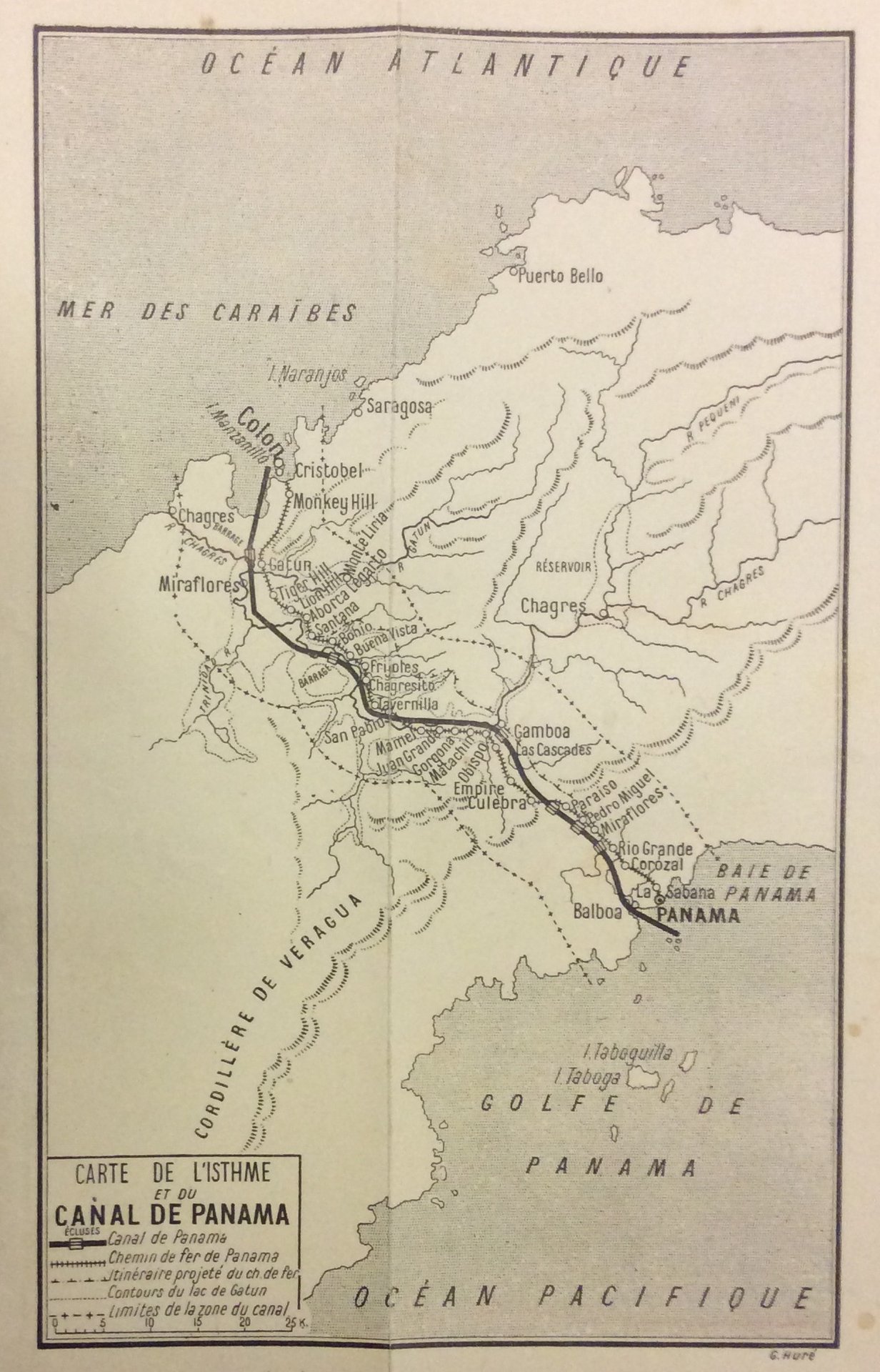 In-8 p., mezza pelle con angoli moderna, conservata brossura editoriale, pp. (4),251, con 20 tavole fotografiche in bianco e nero fuori testo e una cartina geografica ripiegata del canale di Panama. Mancanza allang. superiore della prima pagina; fioriture intercalate nel testo. Discreto esemplare.
