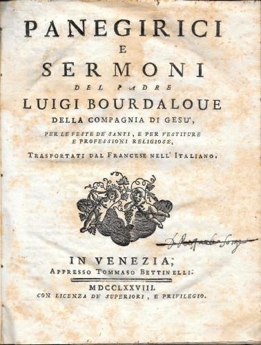 Panegirici e sermoni del padre Luigi Bourdaloue per le feste de' Santi, della Compagnia di Gesù, per vestiture e professioni religiose