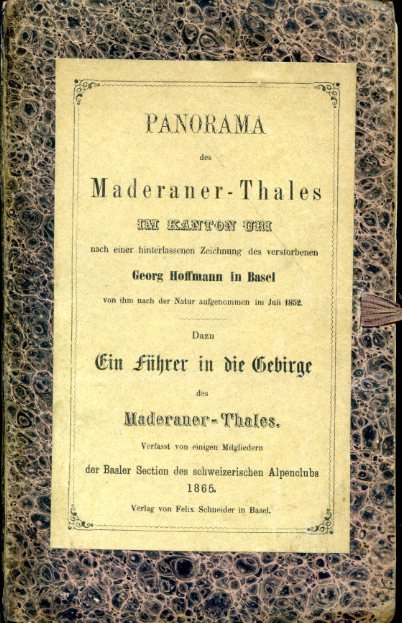 Panorama des Maderaner Thales im Kanton Uri nach einer hinterlassenen Zeichnung des verstorbenen Georg Hoffman in Basel von ihm nach der Natur aufgenommen im Juli 1852. Dazu ein Führer in die Gebirge des Maderaner-Thales. Verfasst von einigen Mitgliedern