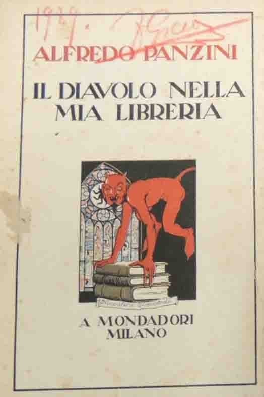 Alfredo Panzini, Il diavolo nella mia libreria, A. Mondadori, Milano 1921, pp. 183, cm 19, br. ed. Firma d’appartenenza e data alla prima di copertina e alla prima pagina di guardia, segnatura di collocazione all’occhiello. Residui di etichetta con segnatura di collocazione rimossa al dorso, minime tracce d’uso, lievi bruniture e fioriture, per il resto ben conservato.