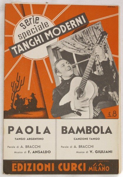 In 8. cm 26,5x18. Pp. 27. Partitura completa per orchestra del 1938 di due canzoni. Caratteristica copertina decorata dell'epoca. Ottime condizioni. A complete score for orchestra of 1938. Carachteristic decorated cover of that period. Very good conditions.