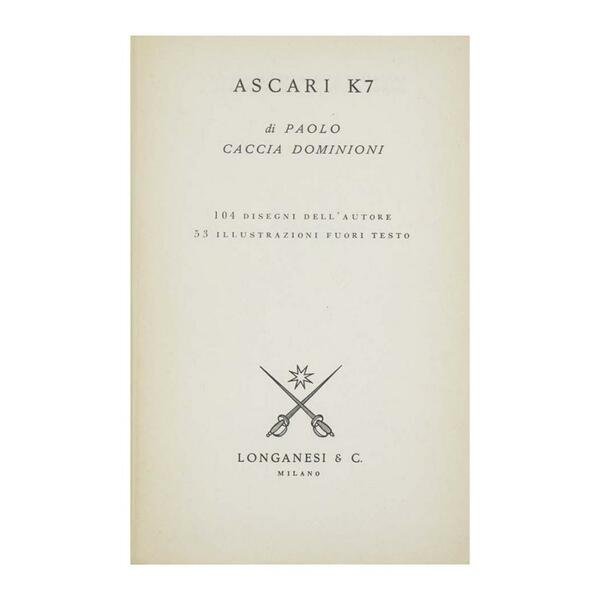 Autore: Paolo Caccia Dominioni Titolo: Ascari k7 Sottotitolo: 104 Disegni dell'autore 53 Illustrazioni fuori testo Edizione: Longanesi & Co. Milano 1966 Dimensioni: 19 x 12,5 cm c.a. Peso: 0,564 kg Pagine: 672 Copertina: Cartonato Condizioni: Ottime come da foto