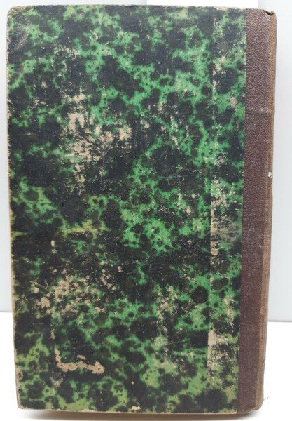 legatura rigida in mezza tela con piatti marmorizzati in discrete condizioni, segni del tempo, dorso in tela con piccoli tagli ai margini ed etichetta di catalogazione, tagli bruniti impolverati quelli superiori, alla seconda di copertina ex libris e legatura a vista, all'antiporta firma di possesso e una macchia di inchiostro, alcune lievi bruniture, interno in discreto stato fioriture alle pagine interne che non disturbano la lettura, alcune pagine leggermente ingiallite alcuni piega gli angoli delle pagine, a pag 189 uno strappo di cm 6, vedere immagine, numero pagine 203 dimensioni cm 18,6 x 12,4
