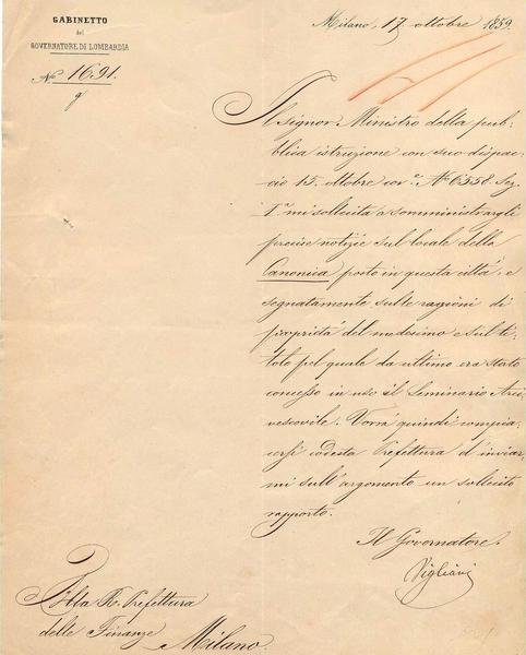 Paolo Onorato Vigliani (1814 – 1900). Politico e Giurista italiano. Lettera manoscritta e firmata.