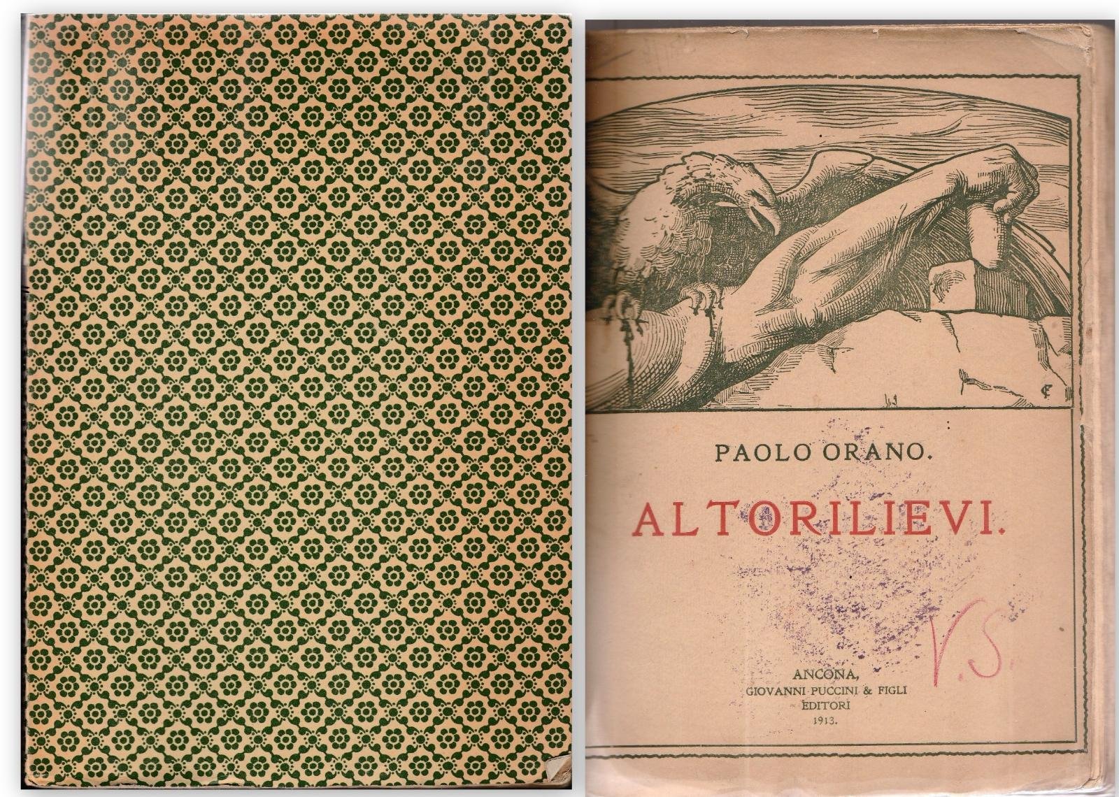 PAOLO ORANO ALTORILIEVI GIOVANNI PUCCINI†ANCONA 1913 L 4585 COPERTINA DECORATA MORBIDA, ALL'INTERNO COPERTINA ORIGINALE CON SIGLA DI POSSESSO A MATITA ROSSA, LIEVI FIORITURE ALLE PRIME PAGINE, TAGLI IRREGOLARI, SOTTOLINEATURA A MATITA E APPUNTI A LATO DEL TESTO SU ALCUNE PAGINE, PICCOLE PIEGHE AGLI ANGOLI DI ALCUNE PAGINE ALL'ULTIMA PAGINA BIANCA TRACCIA DI UN TIMBRO E ALCUNI ALONI N. PAG. 241 CM. 21,4 X 15