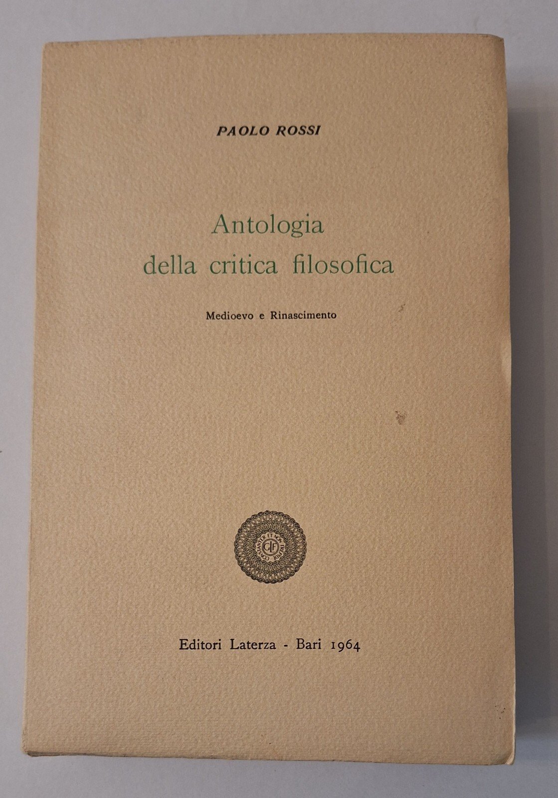 PAOLO ROSSI ANTOLOGIA DELLA CRITICA FILOSOFICA LATERZA 1964