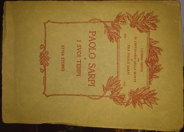 In-8 (26 cm) (1) c. (ritratto in antiporta) XI (1) 169 (3). Brossura editoriale. In testa al frontespizio e al piatto anteriore: "L'Ateneo Veneto nel III centenario della morte di fra Paolo Sarpi, 1623-1923.". Legatura scollata.