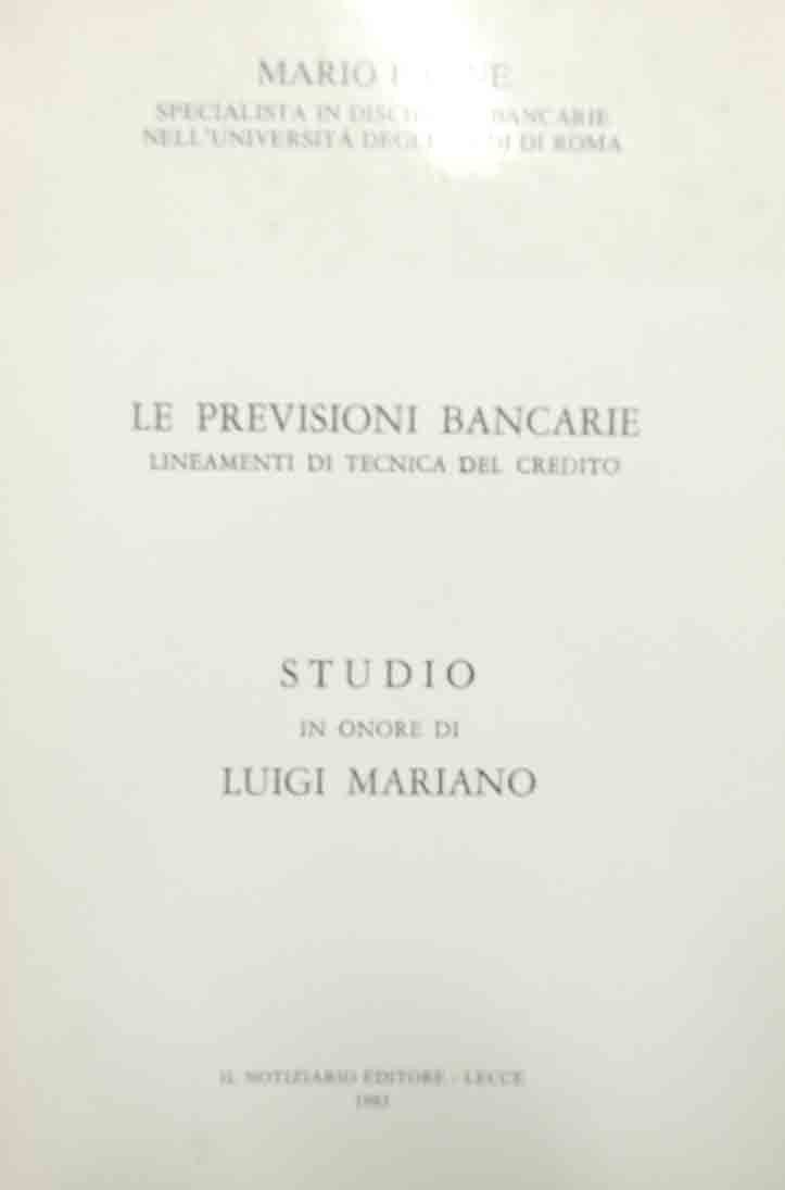 Paone, Le previsioni bancarie. Lineamenti di tecnica del credito. Studio in onore di Luigi Mariano