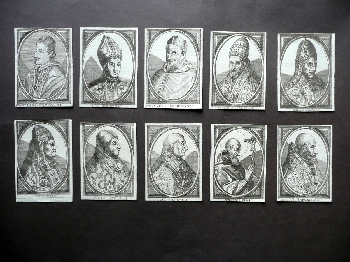 Papi Santi Dieci Ritratti Incisi Fine '600 Religione Retro Bianco
