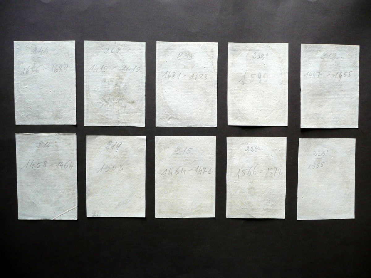 Dieci ritratti incisi, Dieci ritratti incisi in bianco e nero di Papi Santi Ioannes XXIII - Innocentius XI - Gregorius XV - Urbanus II - Pius V - Pius III - Marcellus II - Paulus II - Pius II - Nicolaus V S. d. (fine '600 circa); dieci bei ritratti incisi in b/n su carta, raffiguranti Papi. Nome del corrispettivo Papa Santo al margine inf. di ciascun ritratto (vedi foto). Retri bianchi. Cm 10x7. Condizioni di conservazione Esemplari tutti ben conservati con lievi segni del tempo, margini lievemente rifilati; retri con rimovibili annotazioni numeriche a matita del precedente collezionista. SC03.D13134 N