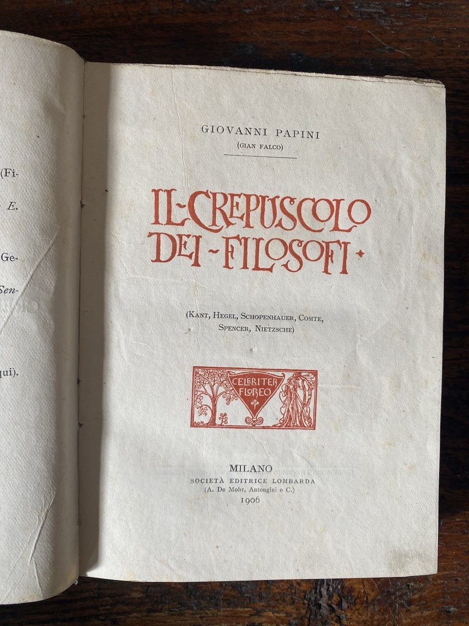 Papini Giovanni Il crepuscolo dei filosofi Milano Società Editrice Lombarda 1906