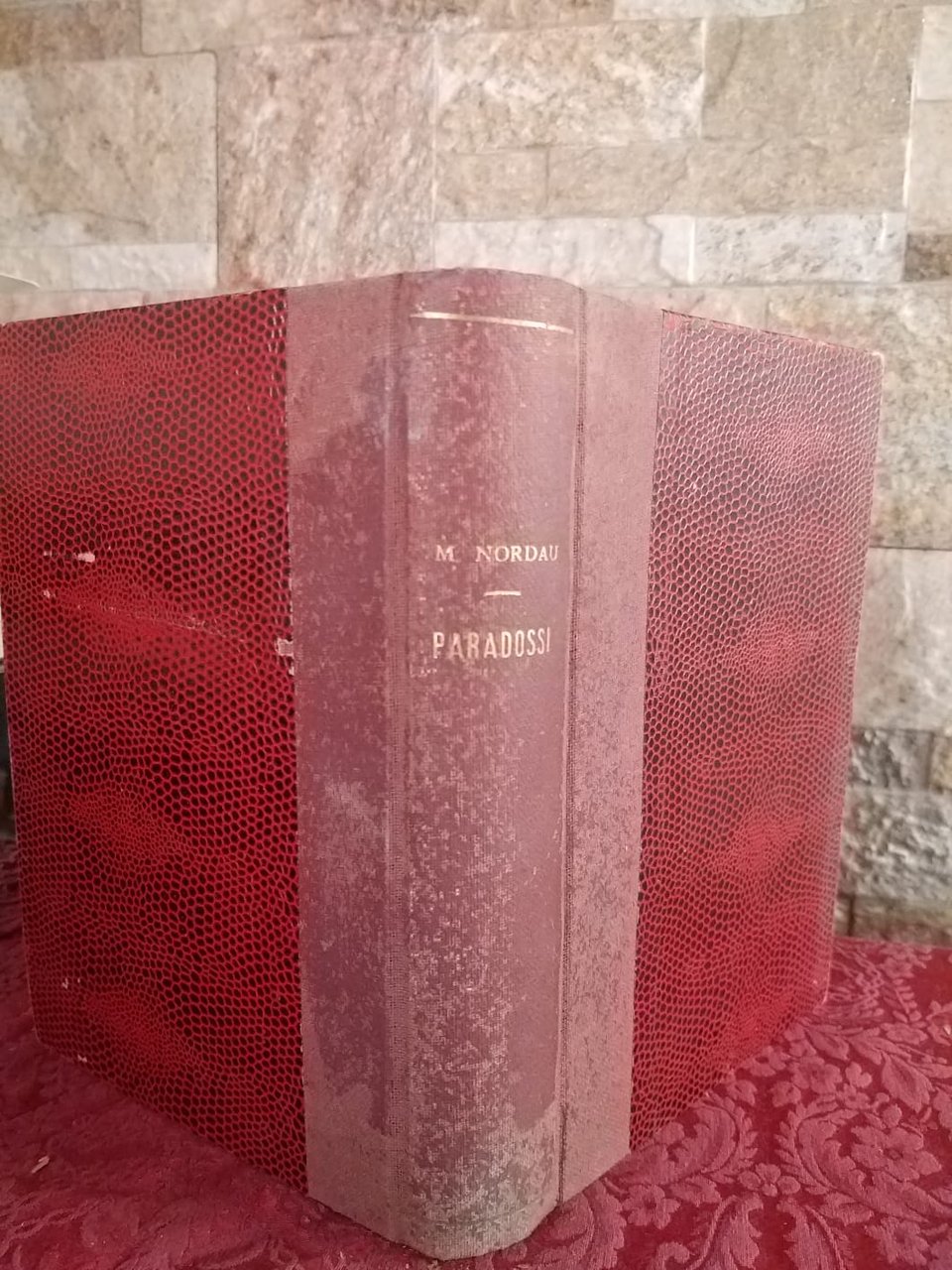 Copertina marmorizzata con banda e titolo dorato al dorso,sporca. Tagli sporchi di polvere e ingialliti. Pagine ingiallite. Legatura artigianale. Mediocre (Poor) .