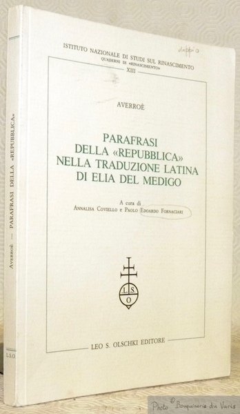 Parafrasi della Repubblica nella traduzione latina di Elia del Medigo. Collezione Istituto Nazionale di Studi sul Rinascimento, Quadernie di Rinascimento XIII.