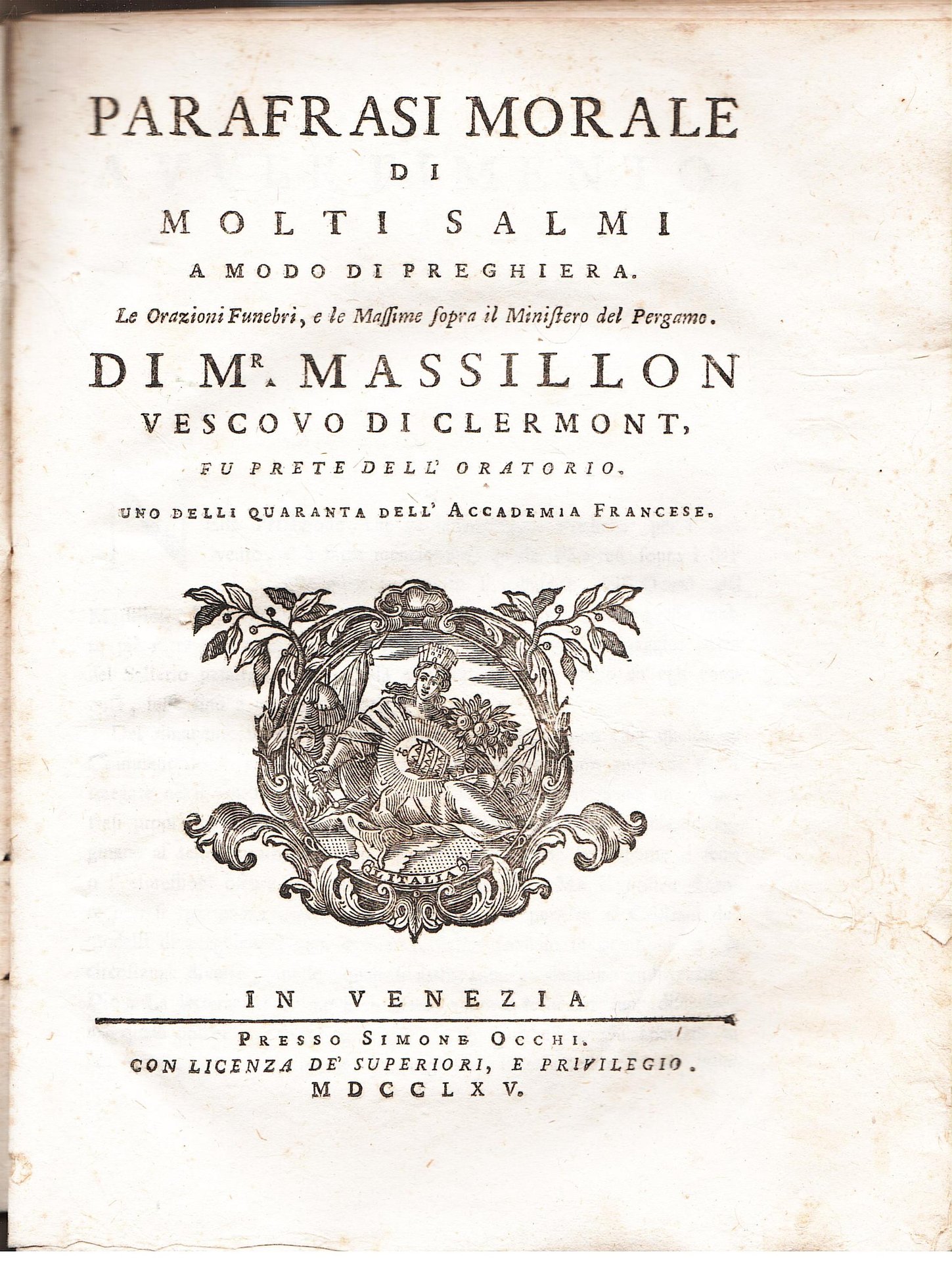 Parafrasi morale di molti Salmi a modo di preghiera. Le Orazioni Funebri, e le Massime sopra il Ministero del Pergamo
