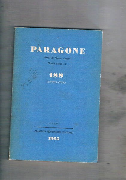 Paragone bimestrale di arte figurativa e letteratura (un mese esce dedicato all'arte e l'altro alla letteratura) n° 188 del 1965 dedicato alla letteratura. Sctitti di G. Contini, G. Ferrata, H. Hesse, A. Zanzotto, M. Soldati, D. Maraini, L. Romano.