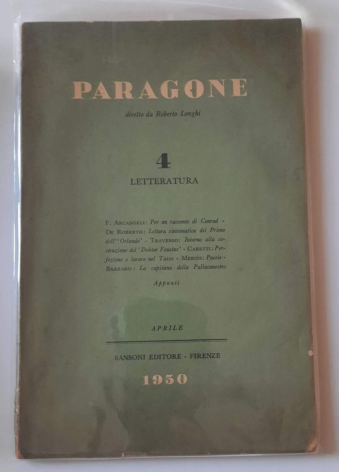 PARAGONE RIVISTA DI LETTERATURA n. 4 1950 SANSONI EDITORE ALDA MERINIIn 8°, legatura editoriale, copertina illustrata.Piccola mancanza alla copertina.
