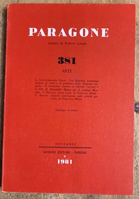 PARAGONE. RIVISTA MENSILE DI ARTE FIGURATIVA E LETTERARIA FONDATA DA ROBERTO LONGHI. Anno XXXII. N. 381. Novembre 1981.