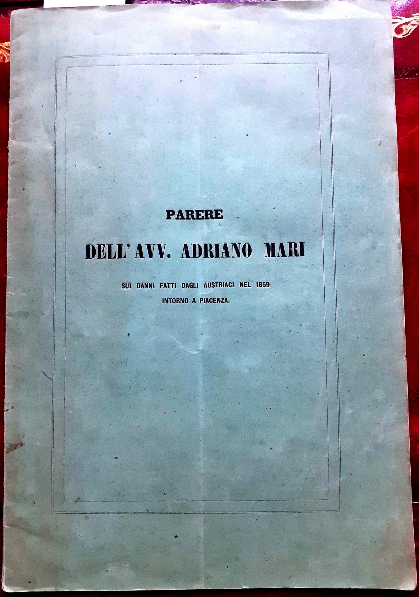 PARERE DELL'AVV. ADRIANO MARI SUI DANNI FATTI DAGLI AUSTRIACI NEL 1859 INTORNO A PIACENZA.