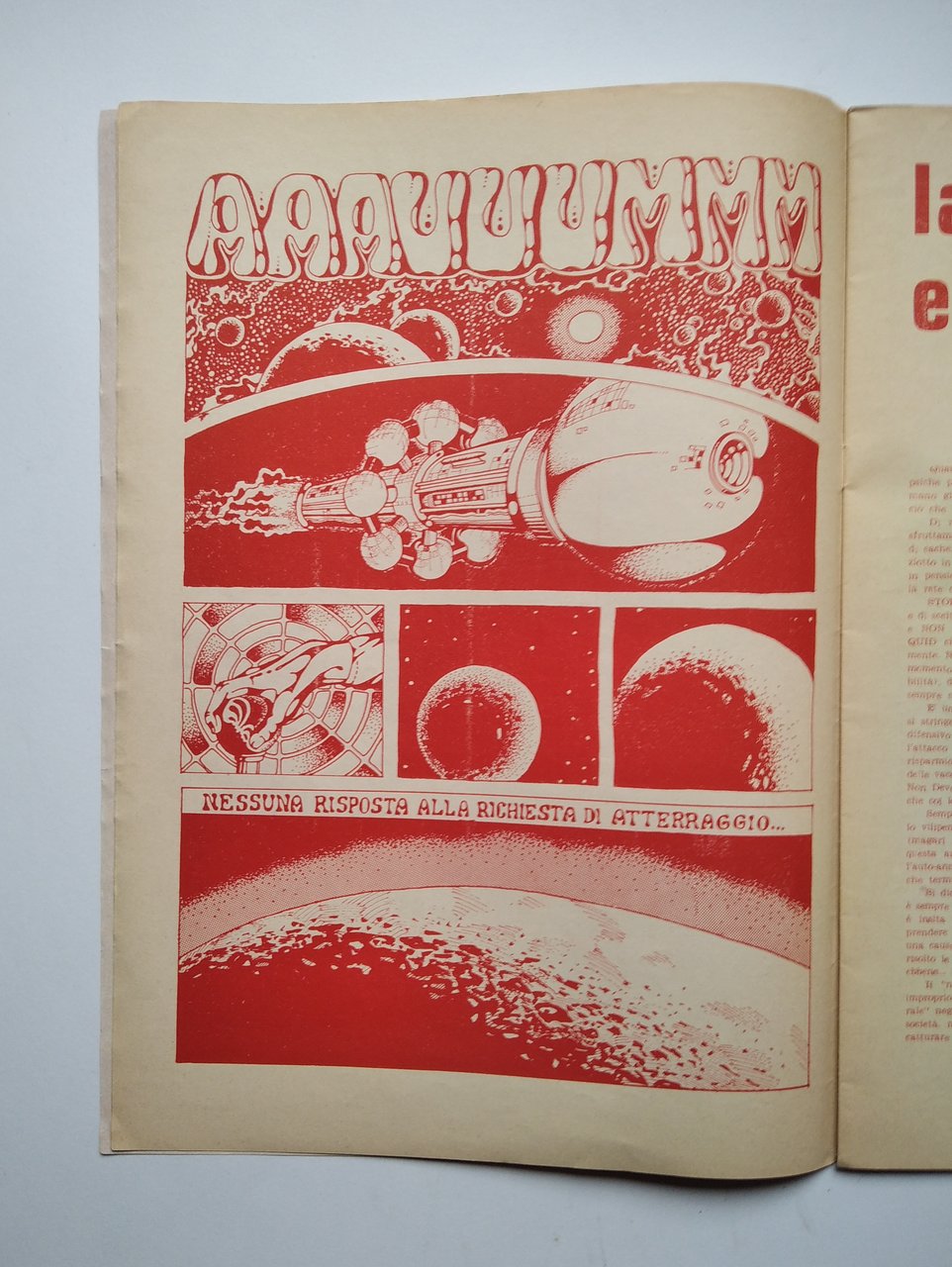 Brossura (cm 29 x21) pag 12+4 (copertina). Collaboratori: Caza, Giulio Tedeschi, Franco Beltramelli, Piero Naselli e altri Freak ticinesi. Rivista underground del Canton Ticino fondata da Antonio Rodriguez nel 1969 e pubblicata fino al 1975 in due serie distinte. La seconda serie fu distribuita in Svizzera, Italia, USA, nel circuito IAP. -- Ogni numero è un'esplosione d'illustrazioni a colori con testi scritti a mano in un intarsio di disegni allucinati e simbolismi psichedelici (Matteo Guarnaccia)