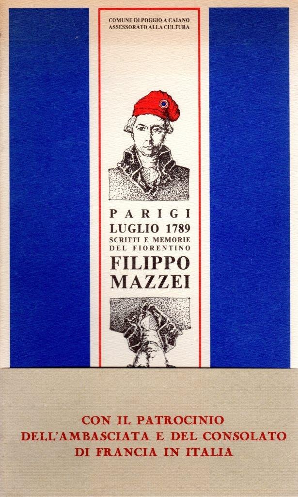 Parigi luglio 1789. Scritti e memorie del fiorentino Filippo Mazzei, prima edizione maggio 1989, pp. 26, formato 16 x 26.<BR>Copertina morbida illustrata con titoli in nero al piatto anteriore . Grafica di Giacomo Formichella. Presente fascetta editoriale.<BR>Lievi segni del tempo. Nel complesso condizioni molto buone.<BR><BR>