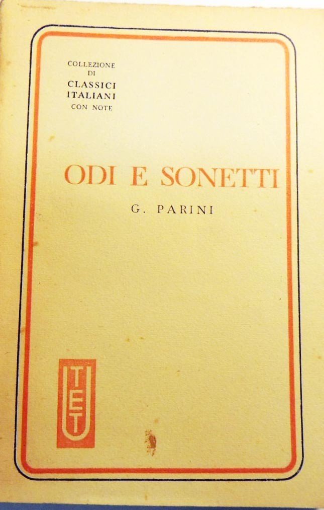Giuseppe Parini, Odi e sonetti, a cura di E. Allodoli, Unione tipografico-editrice torinese, Torino 1944, pp. XVII, 1108, cm 17, br. ed. Collana Collezione di classici italiani con note, n. 2. Uno strappetto e leggeri segni del tempo al dorso, tre carte con qualche sottolineatura e annotazione manoscritta a lapis, per il resto esemplare in buono stato e in parte intonso.