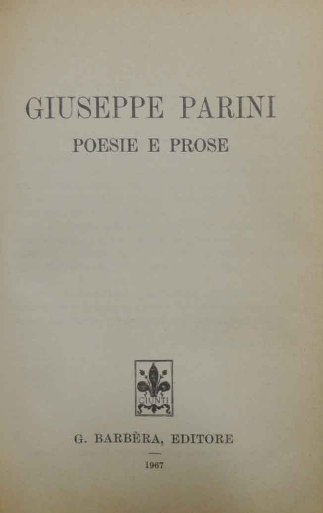 Giuseppe Parini, Poesie e prose, G. Barbera Editore, Firenze 1967, pp. XLI, 596, cm 19, legatura in similpelle ed. con titoli al dorso. Minime fioriture, carta lievemente ingiallita, per il resto ben conservato.