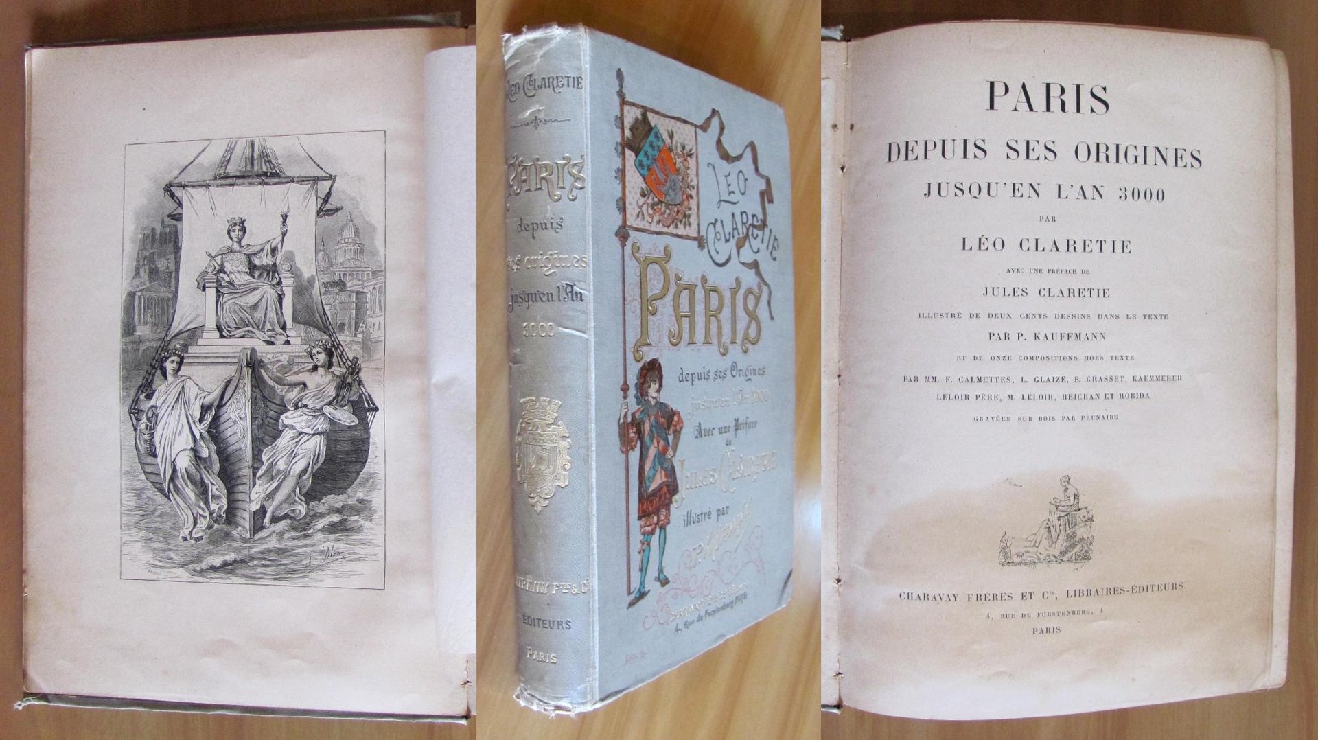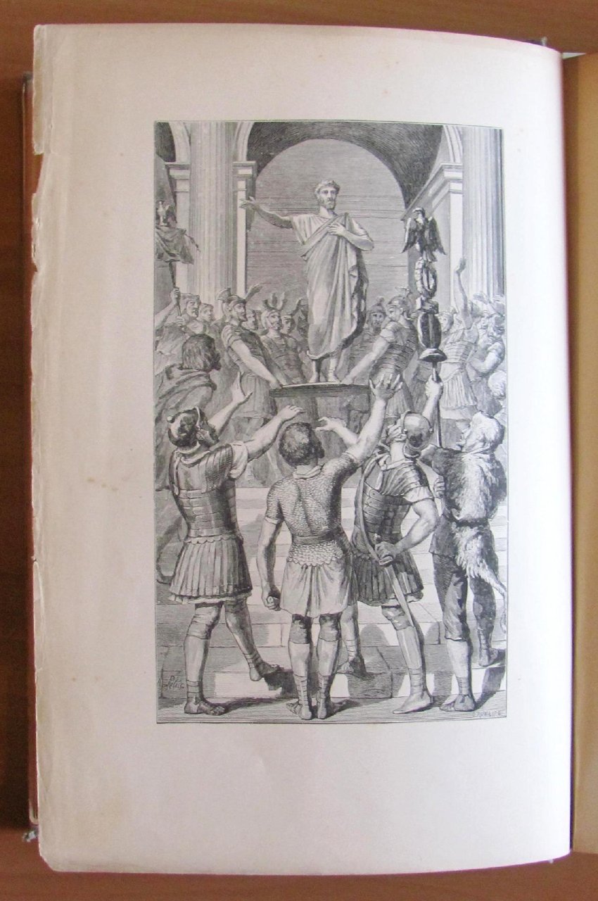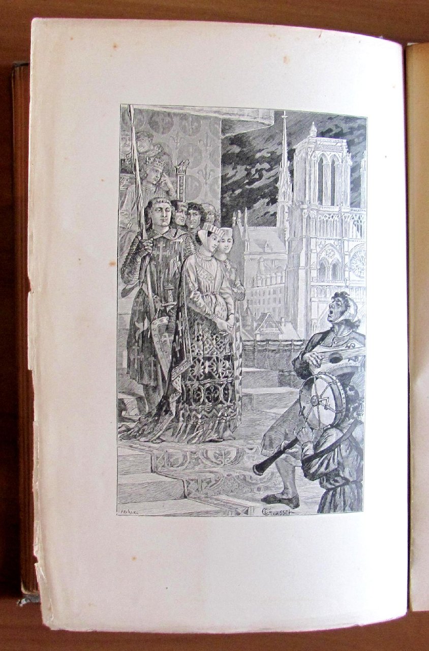 200 illustrazioni n.t. di P. Kauffmann e 11 splendide tavole f.t. di Calmettes, Glaze, Grasset, K. Leloir père, M. Leloir, Rejchan e Robida. Ed. Charavay Frères et Cie - Paris, s.d. ma 1886. Tela editoriale con bella illustrazione policroma al piatto, titoli in oro e nero al dorso e illustrazione in nero alla retrocopertina. Tagli dorati alle pagine. Le sole cuffie del dorso e la cerniera posteriore presentano delle lievi slabbrature e leggera macchia al frontespizio appena passante alla pagina successiva. Esemplare pulito e freschissimo. 21x28,5; pp.364. Raro, Ottimo stato. , Molto buono (Very Good)