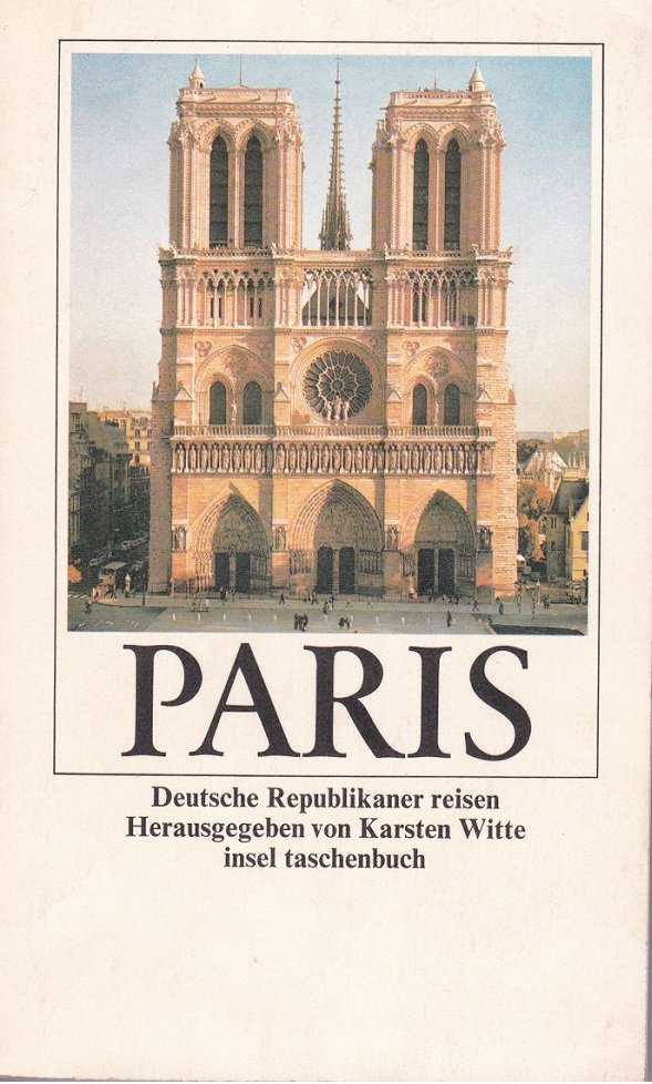 Handschriftliche, datierte und signierte Widmung des Herausgebers auf fliegendem Vorsatz. - Mit zahlreichen sw Abbildungen im Text, Literatur-, Bild- und Quellenhinweisen. Über Paris berichten: Herder, Melchior Grimm, W. v. Humboldt, Georg Forster,H. v. Kleist, J.G. Seume, Fürst zu Pückler-Muskau, Heinrich Heine, Karl Gutzkow, Th. Fontane, Karl Marx, Paula Becker-Modersohn, R.M. Rilke, Franz Kafka, Otto Flake, Iwan Goll, George Grosz, Walter Mehring, Harry Graf Kessler, Anna Seghers, Max Frisch, Wolfgang Koeppen, Peter Handke und viele andere.