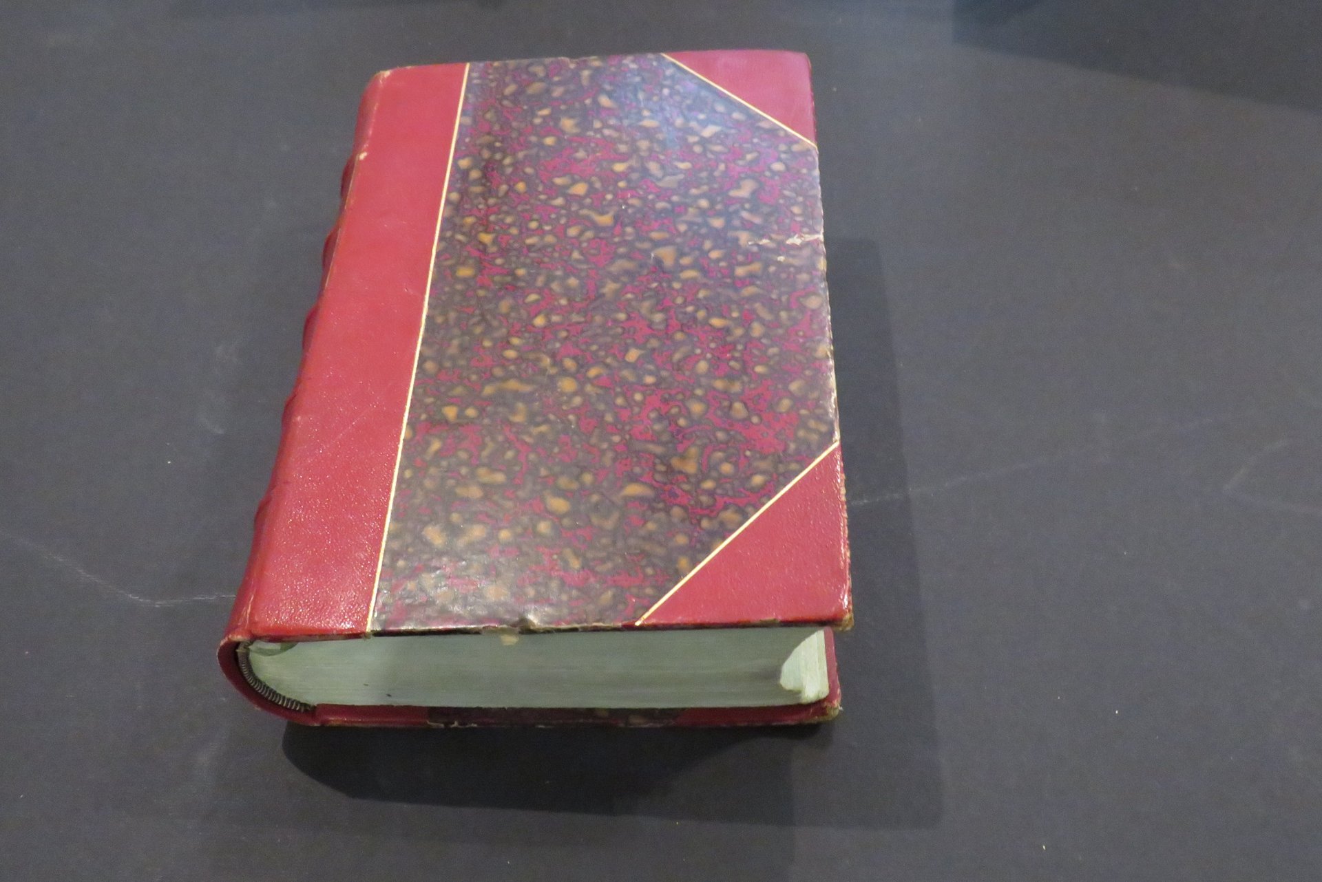 - legatura mezzo marocchino ad angoli con titolo e fregi in oro ai dorsi a 5 nervi