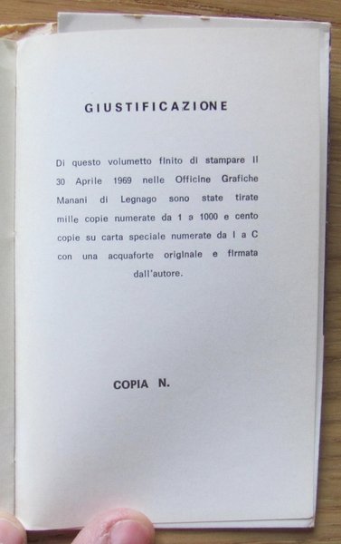 Dedica Autografa del Pittore in entrambi i libri. Tirature Limitate a 1000 esemplari. Illustrazioni in b/n n.t. in entrambi i volumi nelle pagine di presentazione poi 28 tavole in b/n e a colori f.t. ante-retro al primo e 32, come sopra, al secondo di Orfeo Tamburi. Edizioni d'Arte Ghelfi - Milano, 1969-1970. Brossure editoriali con sovraccoperte originali. Il primo titolo è in Italiano, il secondo in Francese. 8x13,5; pp.32; 38. Entrambi in Ottimo stato. , Buono (Good)