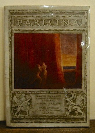 16mo (cm. 18,5), 94 pp., 1 c.nn. con quattro tavv. f.t. da quadri di G. Previati e cinque disegni n.t. di Reni. Copertina patinata a vari colori ed altra vignetta nella copertina posteriore. Ottimo esemplare. Edizione originale. De Medici, 79; Guabello, 194; Vecchioni, 44.