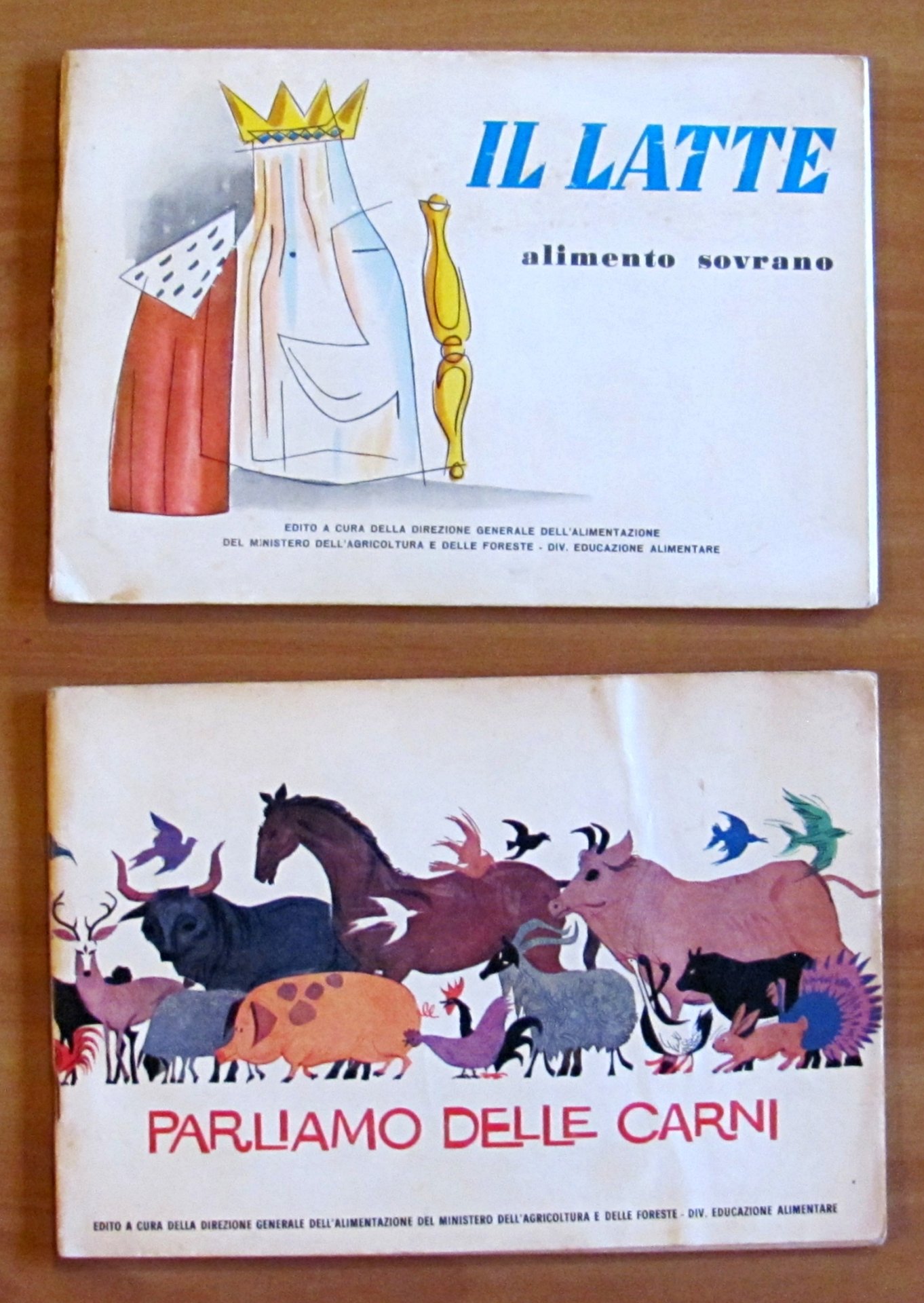 Illustrazioni a colori n.t. a quasi tutte le pagine. Tipografia dell'Orso - Roma, 1964. Brossure editoriali con traccia di vecchia gora alla retrocopertina del volume Parliamo delle Carni. 24x17; pp.36 + 48. BUONISSIMO STATO , Molto buono (Very Good)