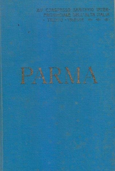 8°, leg.edit. (riparata), titoli oro pp. (38)-IV-200-(2). Guida di Parma pubblicata in occasione del IV Congresso Sanitario Interprovinciale dell'Alta Italia, Trento e Trieste. Nella prefazione alla guida si fa cenno alla erezione del monumento a Vittorio Bottego e viene pubblicata la fotografia del bozzetto scultoreo di Ximenes. Molte illustrazioni n.t.