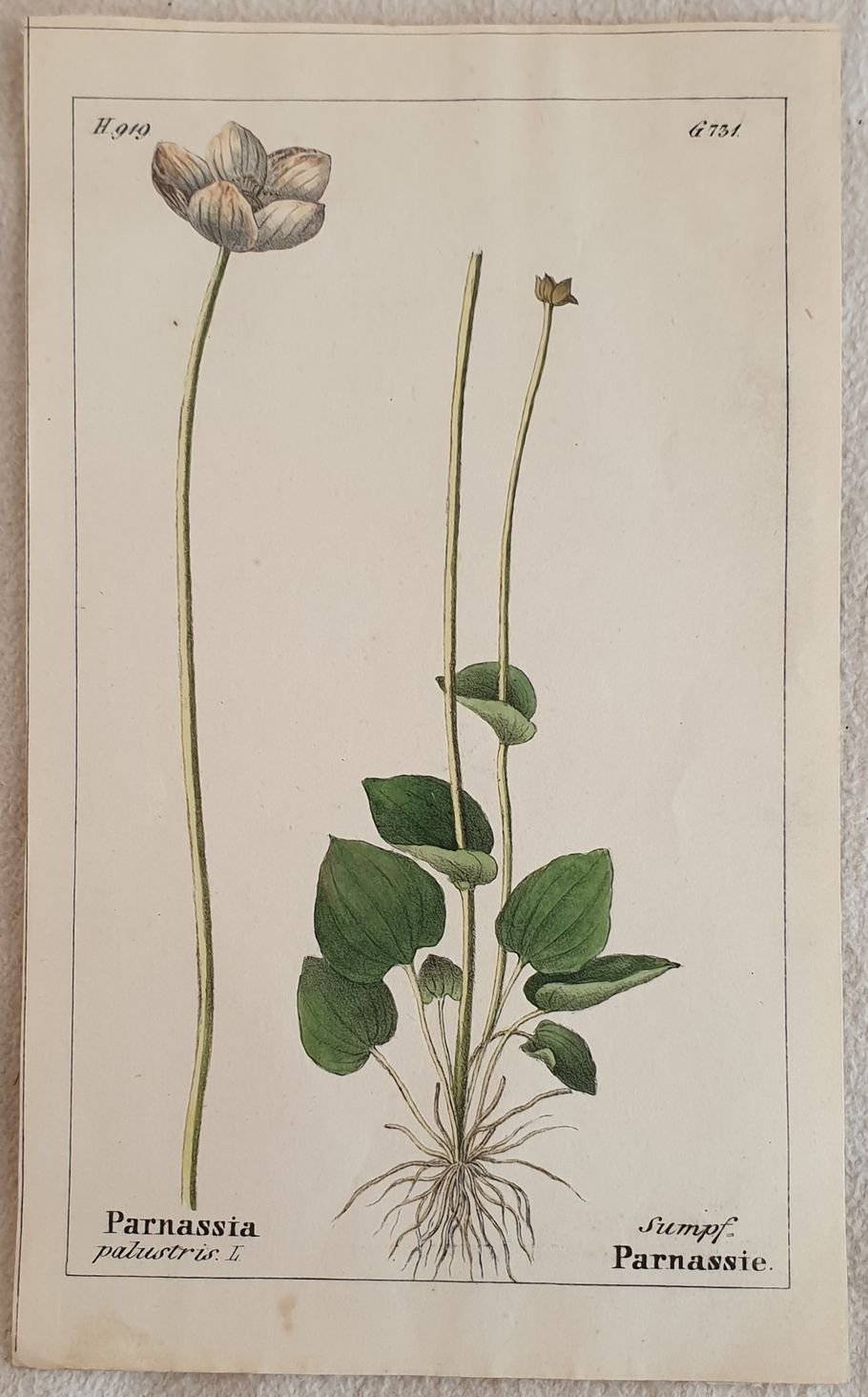 Bella cromolitografia del 1843 tratta dalla celebre opera di botanica "Flora der Schweiz" di Heinrich Romer sulla flora della Svizzera che rappresenta la parnassia palustris. In buone condizioni, qualche fioritura. Segni di colla al verso. Parnassia palustris TECNICA: Cromolitografia DIMENSIONI FOGLIO: cm 17,5x11 DIMENSIONI INCISIONE: cm 15,5x9,5 EPOCA: 1843 CONDIZIONI: Buone condizioni, qualche fioritura. Resto di colla al verso.Beautiful chromolythography of 1843 taken form the famous work of botany "Flora der Schweiz" by Heinrich Romer about flowers of Switzerland representing the leafy goosefoot. In good conditions, some foxings. Glue signs in the verso of page. Parnassia palustris TECHNIQUE: Lytography PAGE SIZE: cm 17,5x11 PRINT'S SIZE: cm 15,5x9,5 PERIOD: 1843 CONDITION: good conditions with some foxings. Little tears in the lower edge. Glue signs in the verso of page.
