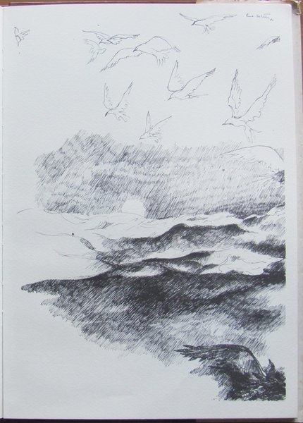 25 disegni in b / n n.t. a piena pag. e 1 a doppia pag. di Pino Schiti, ogni disegno n.t. e' preceduto da una poesia di diverso autore. 25x35; pp.28 non num. Cart. in pelle edit. con sovracop. Qualche strappetto ai margini della sovracoperta. Dedica del tempo al primo disegno. Inserto allegato con disegni dell'artista e una nota di Ugo Attardi. Salvo la sovracop. il libro e l'allegato sono Ottimi. ,