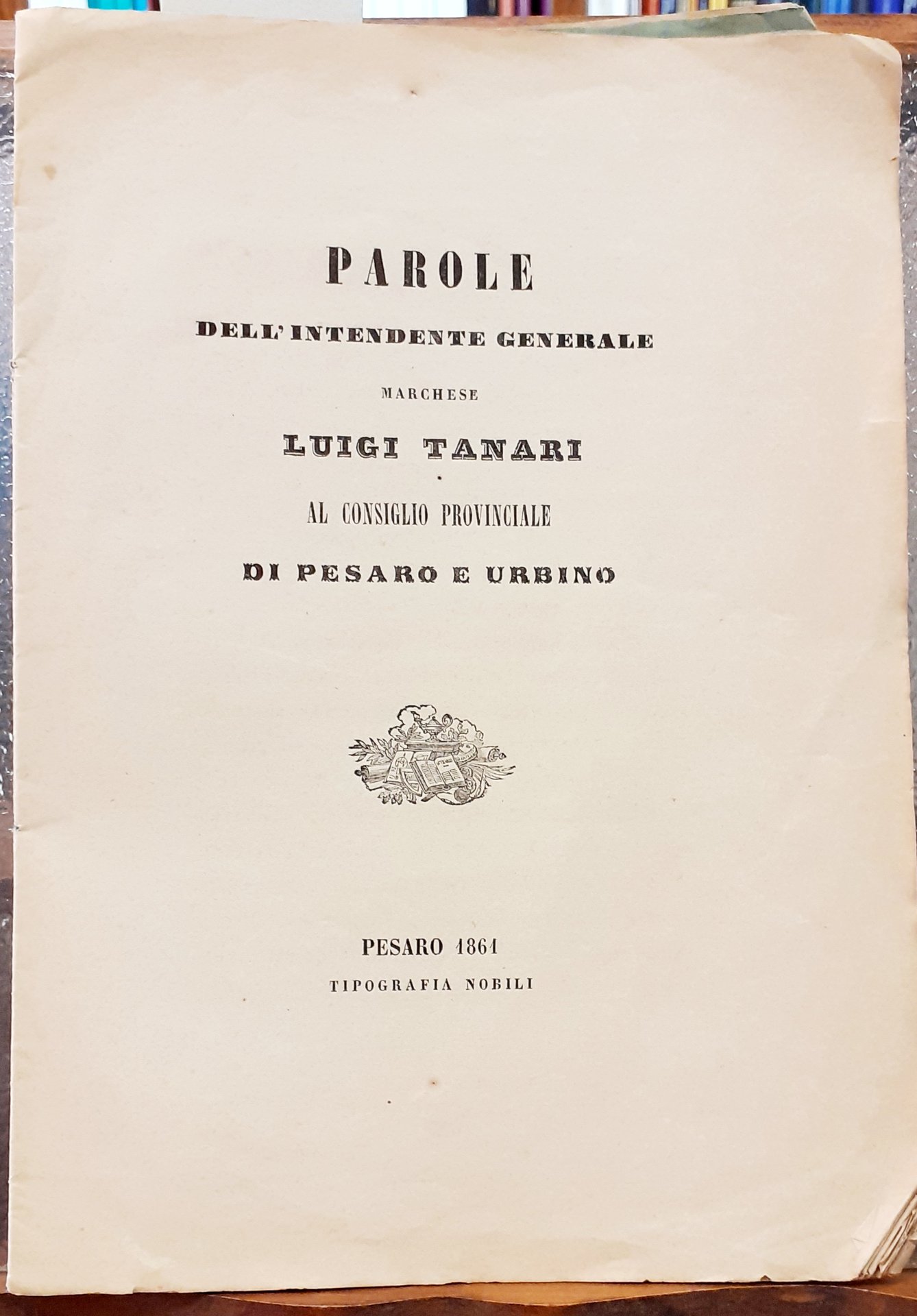 PAROLE DELL'INTENDENTE GENERALE MARCHESE LUIGI TANARI AL CONSIGLIO PROVINCIALE DI PESARO E URBINO.