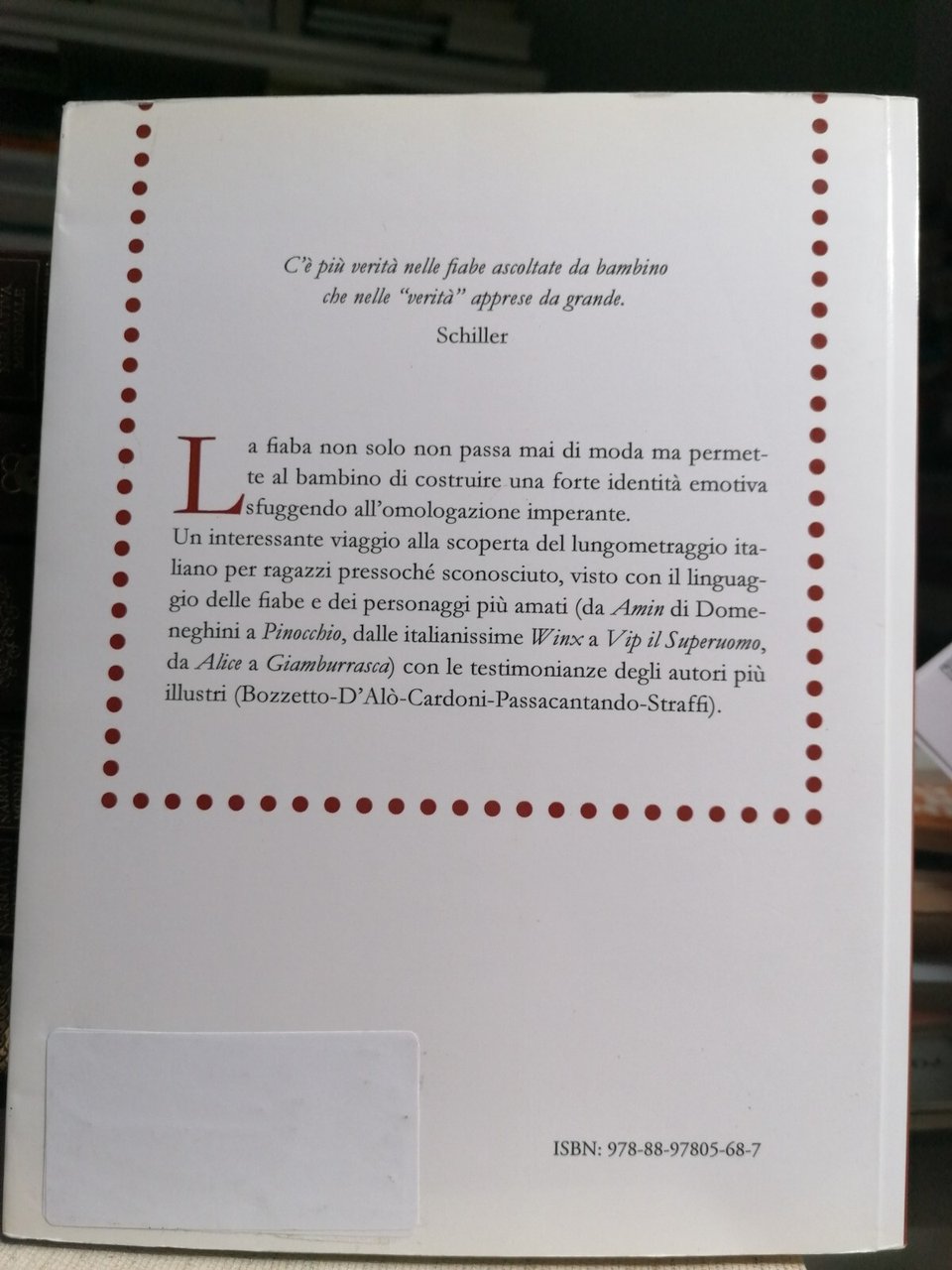 Editore: Arbor Sapientiae Editore Collana: Il calamaio d'oro Data di Pubblicazione: 2015 EAN: 9788897805687 ISBN: 889780568X Pagine: 244 Formato: brossura Condizioni: buone 2F-7-4 Descrizione del libro La fiaba non solo non passa mai di moda ma permette al bambino di costruire una forte identità emotiva sfuggendo all'omologazione imperante. Un viaggio alla scoperta del lungometraggio italiano per ragazzi pressoché sconosciuto, visto con il linguaggio delle fiabe e dei personaggi più amati (da Amin di Domeneghini a Pinocchio, dalle italianissime Winx a Vip il Superuomo, da Alice a Giamburrasca) con le testimonianze degli autori più illustri (Bozzetto-D'Alò-Cardoni-Passacantando-Straffi).