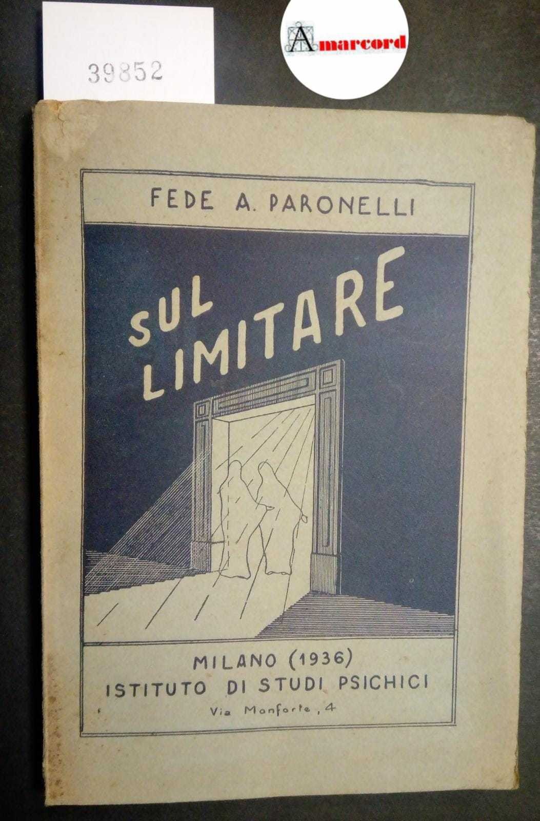 Paronelli Fede A. Paronelli Fede A., Sul limitare, Istituto di Studi Psichici, 1935. Milano, Istituto di Studi Psichici 1935 italiano, in sedicesimo 96 39852