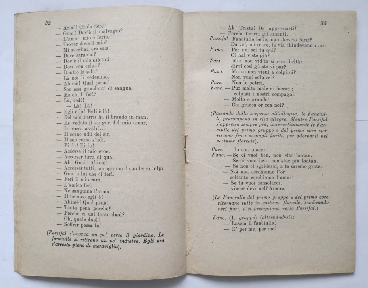 PARSIFAL dramma mistico in 3 atti di Riccardo Wagner 1914 Madella libretto opera