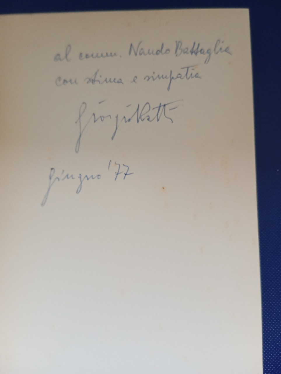 Copertina con alcuni segni di usura, come da foto, presente dedica iniziale, come da foto