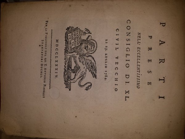 Parti prese nell'eccellentissimo Consiglio di XL civil vecchio. Li 23 luglio 1784