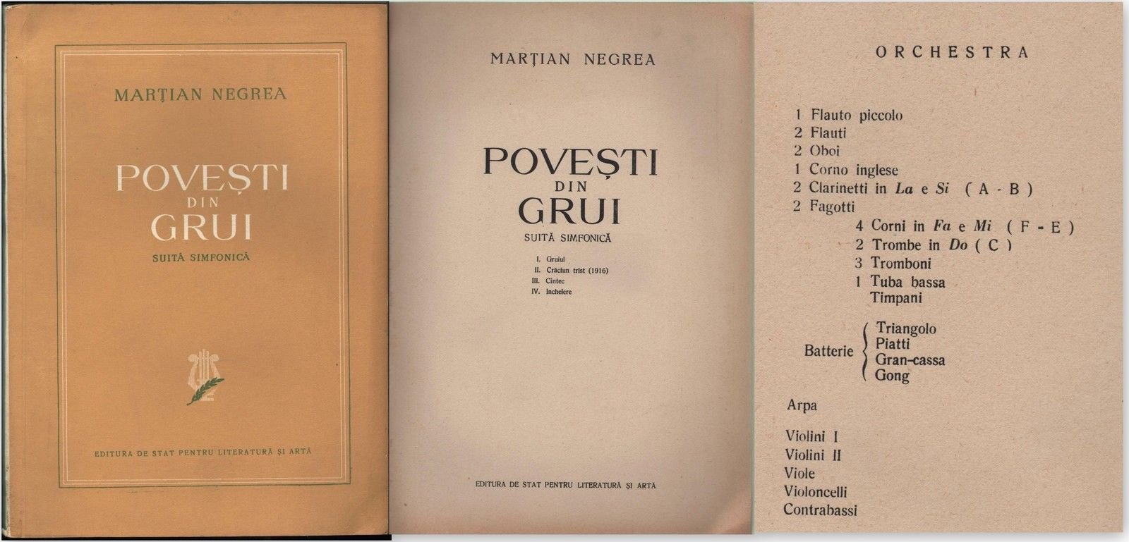 PARTITURA-SCOR MUZICALE-POVESTI DIN GRUI-MARTIAN NEGREA-1956-Exemplare-541/1100