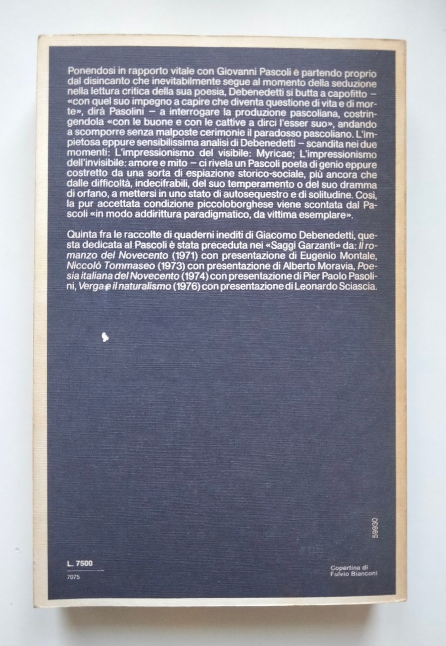 Pascoli: la rivoluzione inconsapevole, Giacomo Debenedetti, Garzanti, 1979